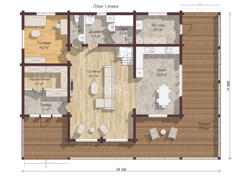 Проект Дома из бревна Ц-1023