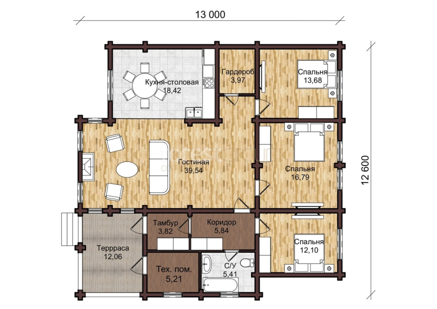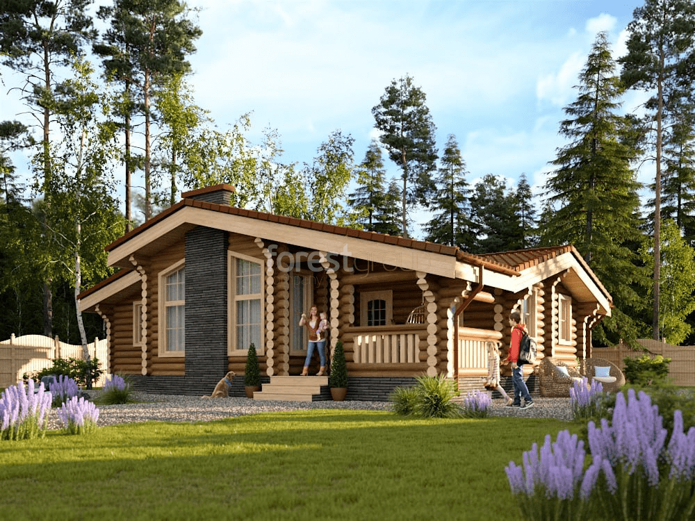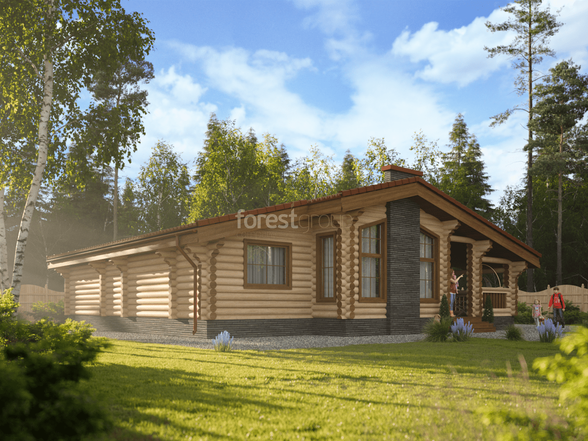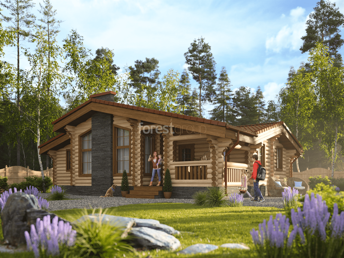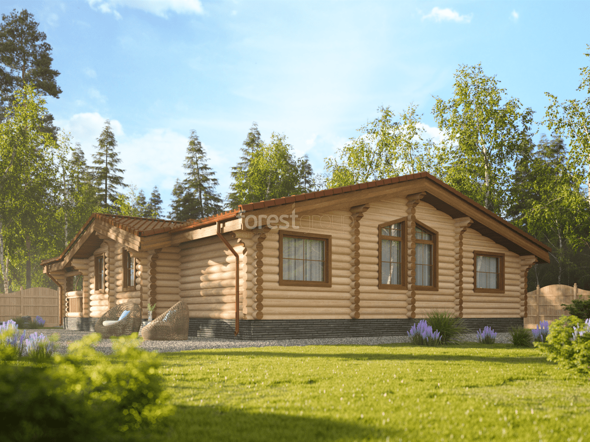 Уютный одноэтажный дом из бревна с 3 спальнями