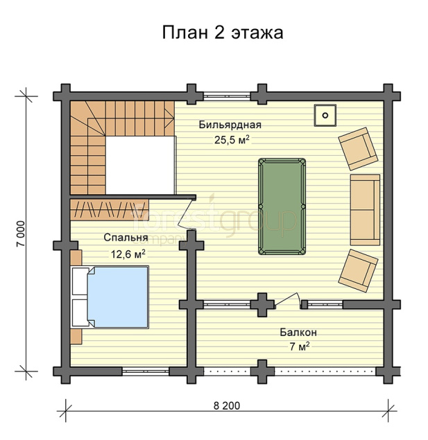 Проект Бани из оцилиндрованного бревна Ц-522
