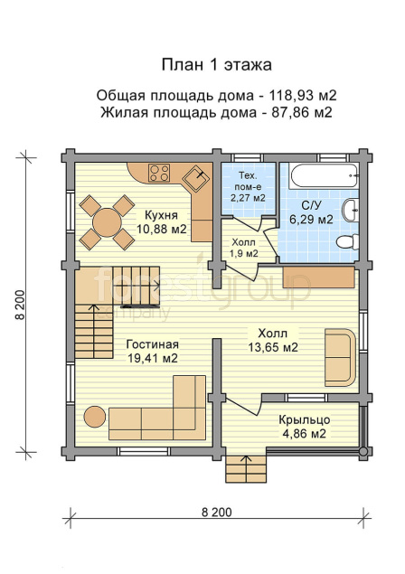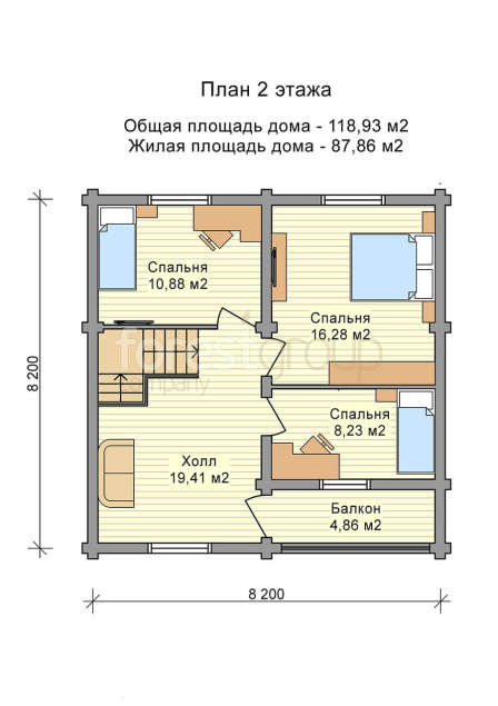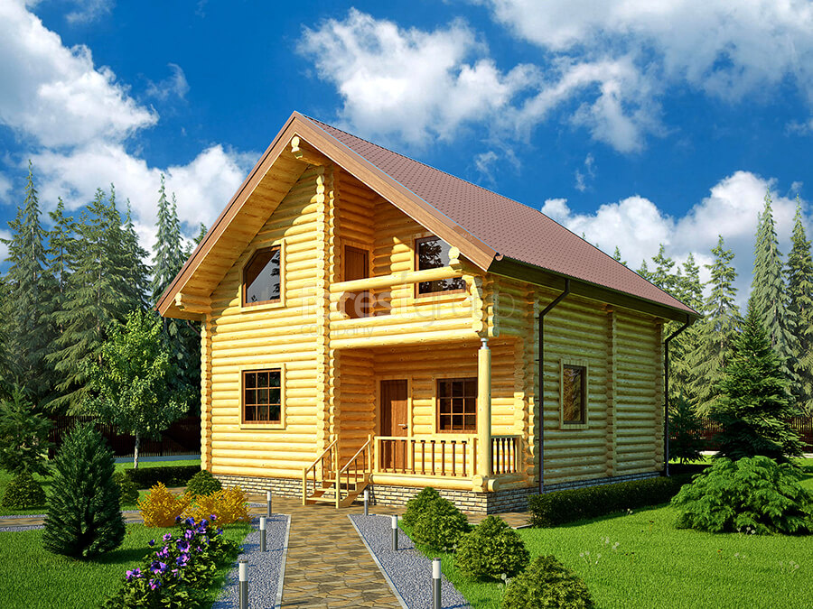 Комфортный двухэтажный дом с 3 спальнями и гостиной, материал оцилиндрованное бревно