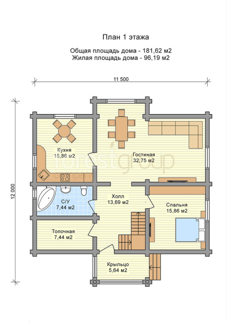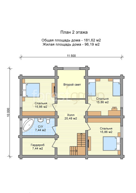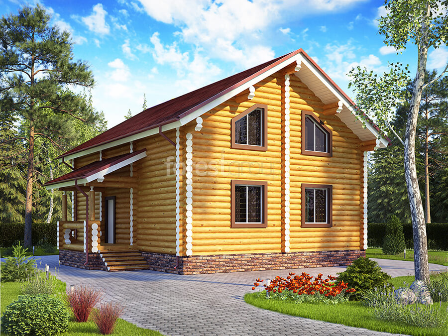 Двухэтажный дом лофт из бревна с 4 спальнями, второй свет