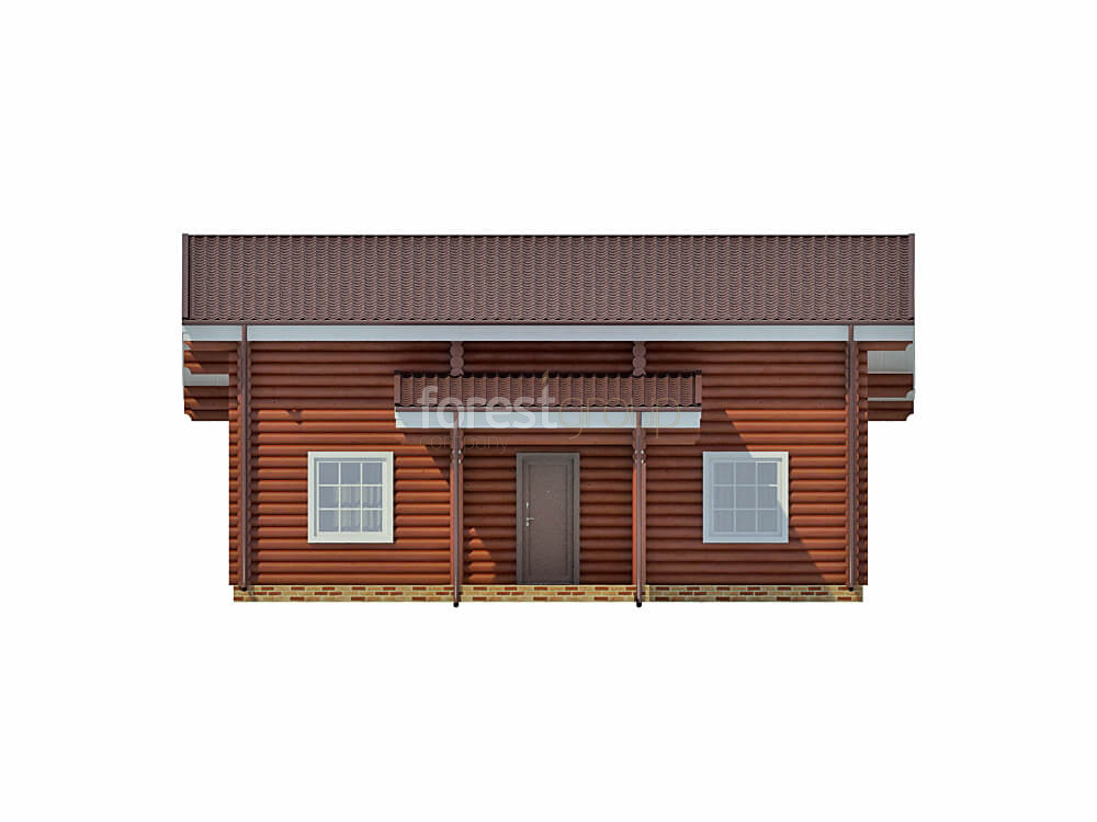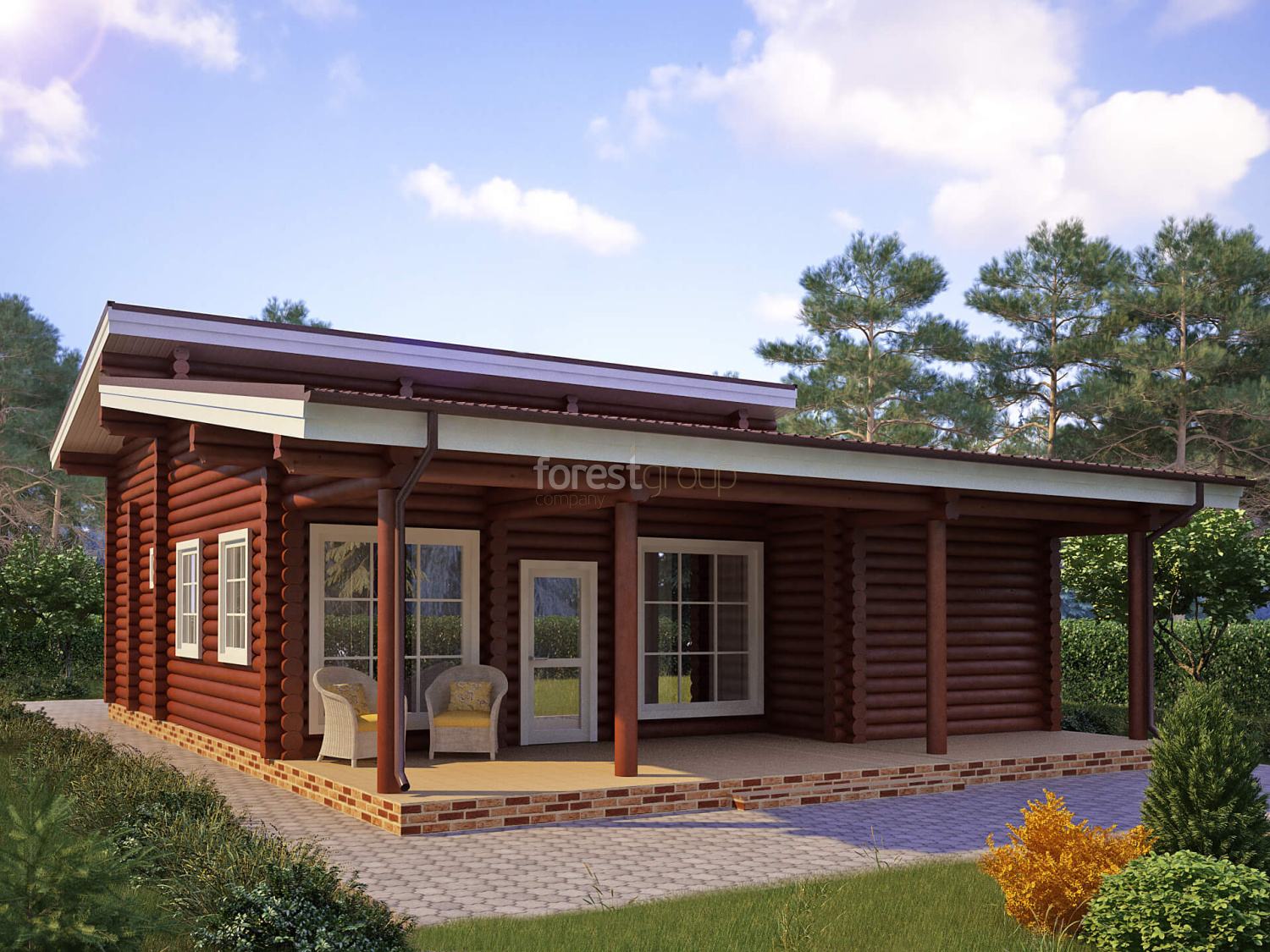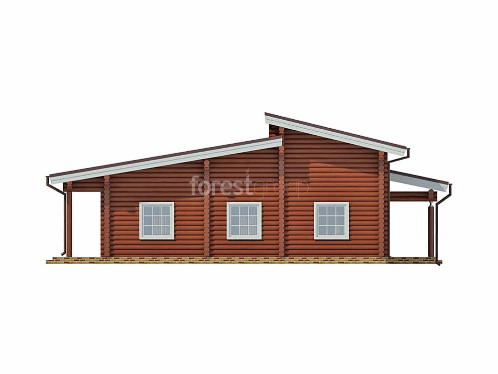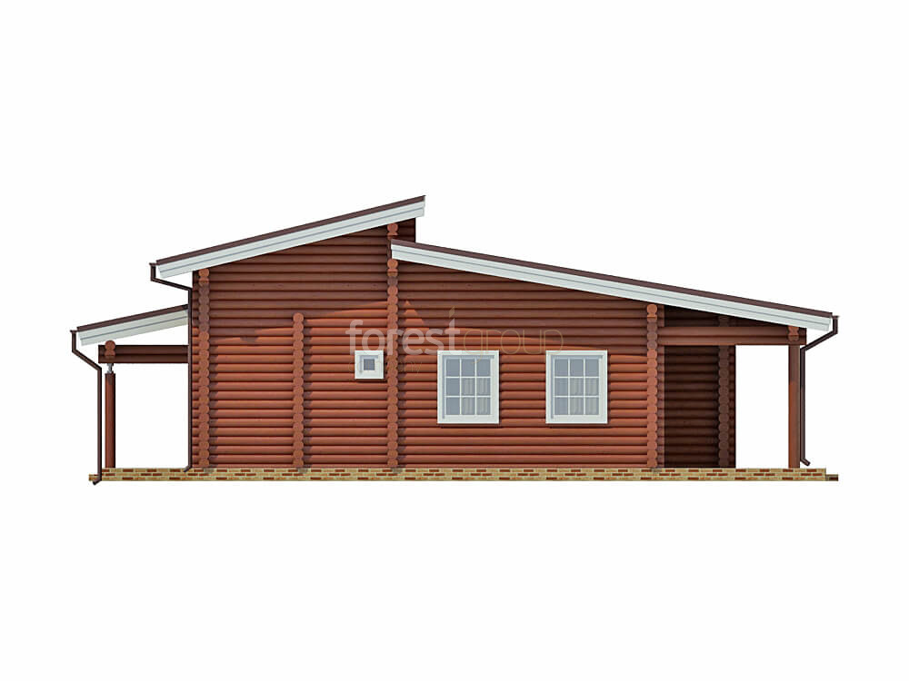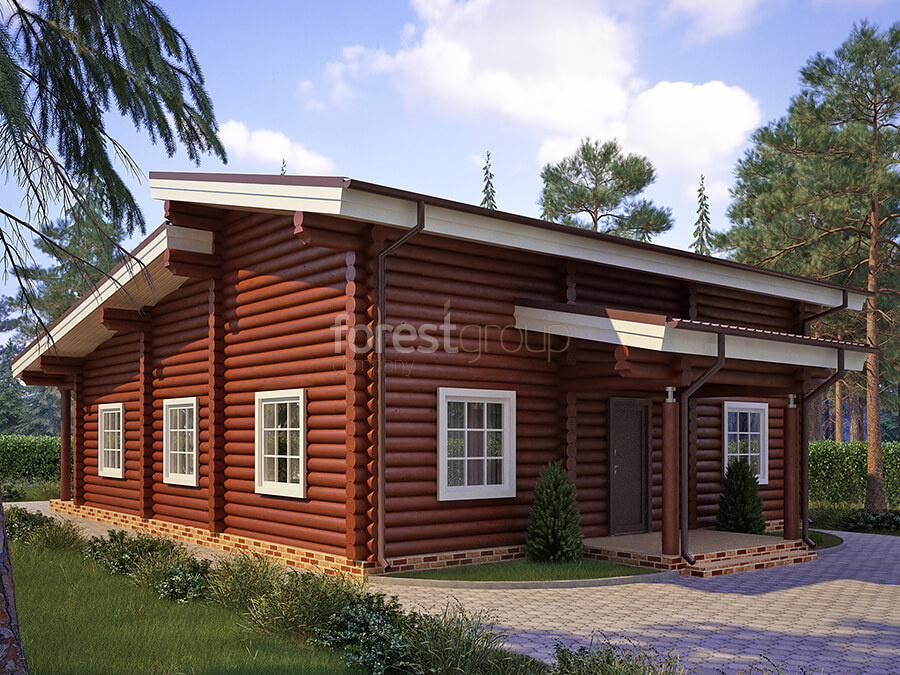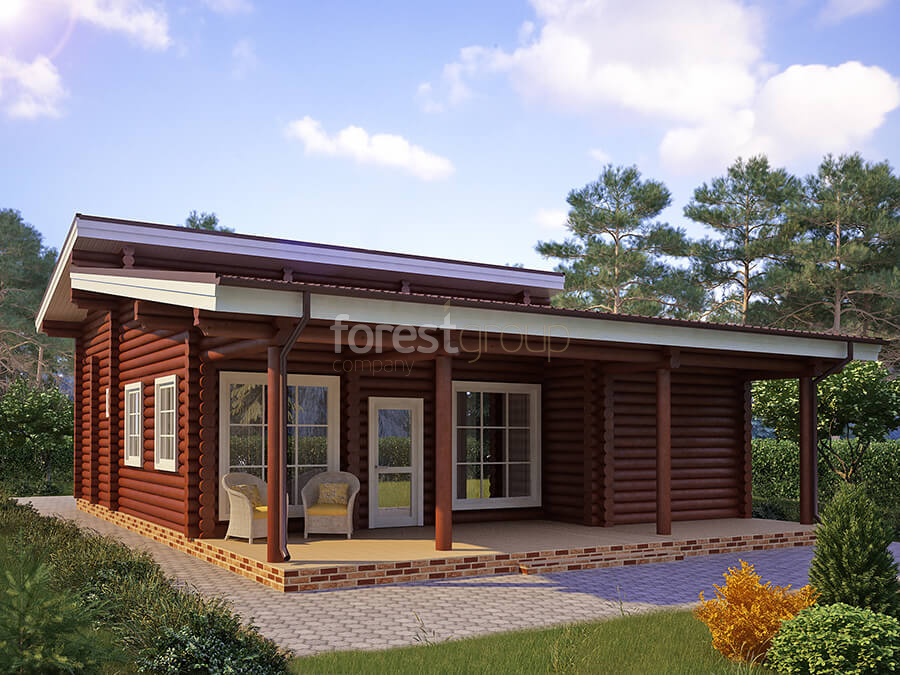 Одноэтажный дом с большой террасой, материал оцилиндрованное бревно