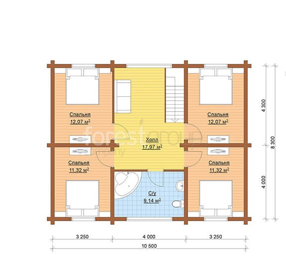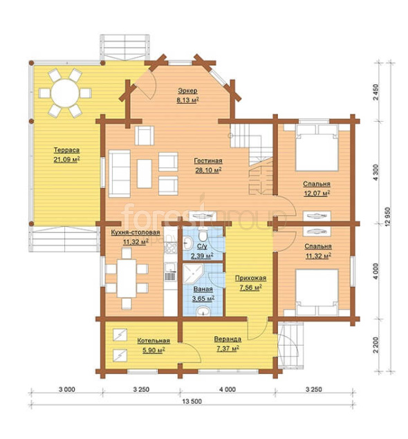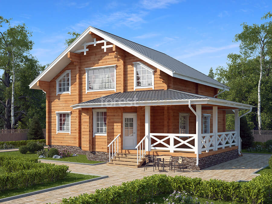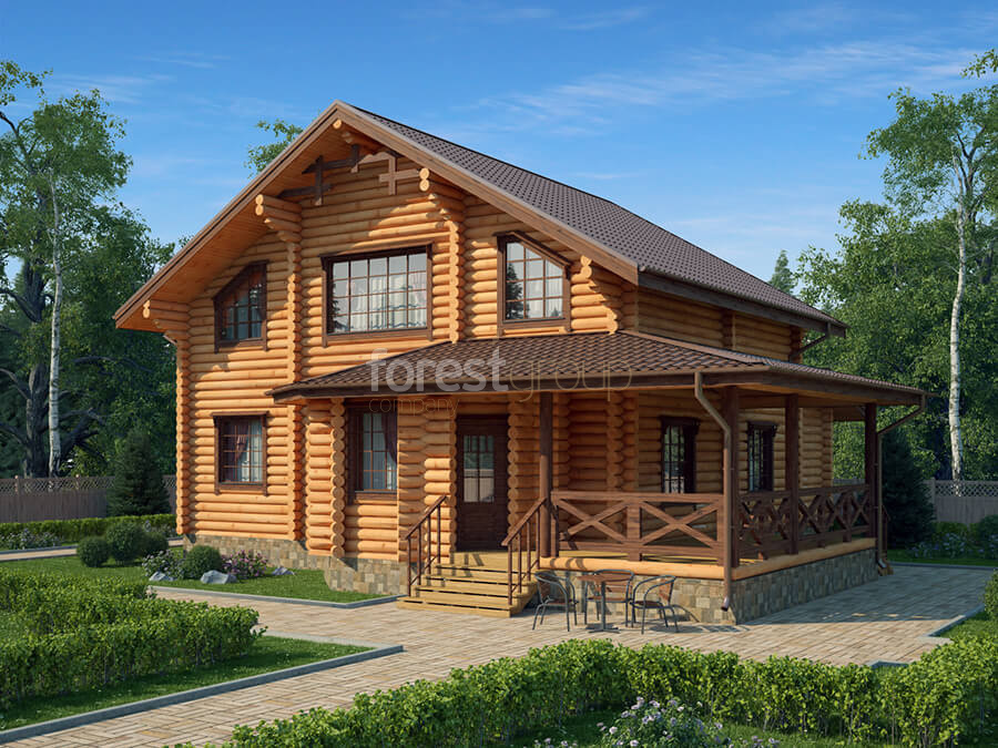 Загородный дом из оцилиндрованного бревна с террасой и 6 спальнями