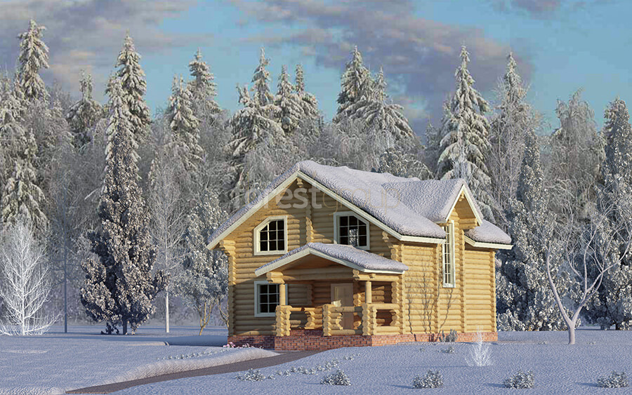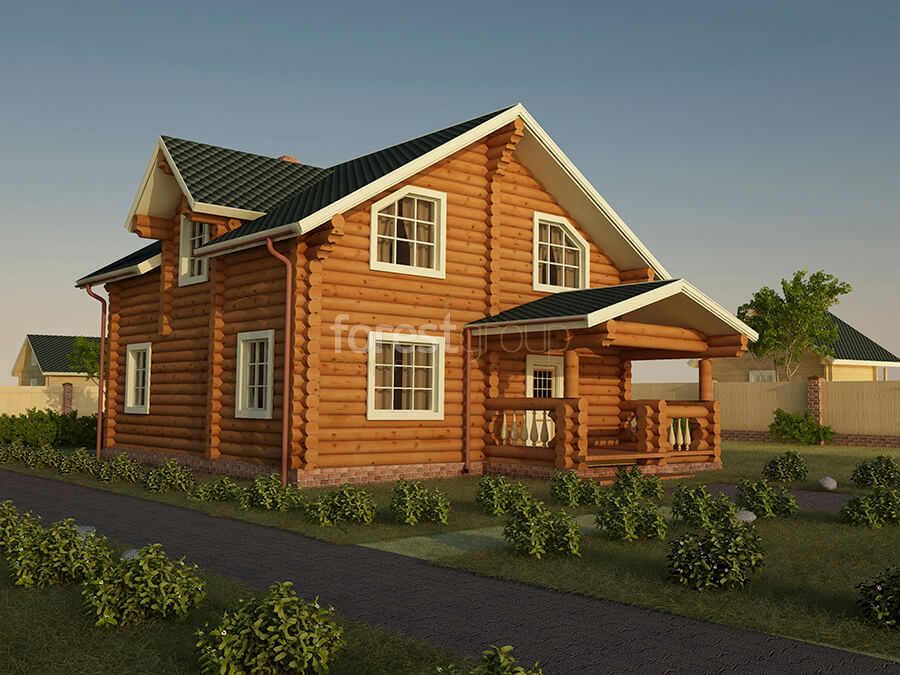 Двухэтажный дом из бревна с 3 спальнями и крыльцом