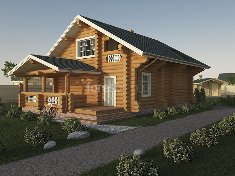 Уютный двухэтажный дом из бревна с верандой.
