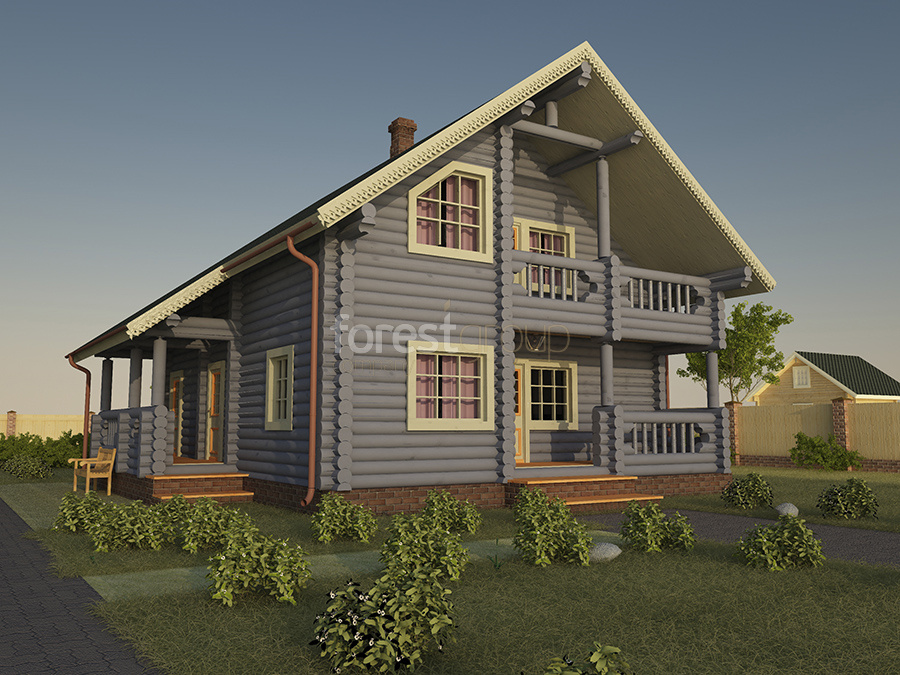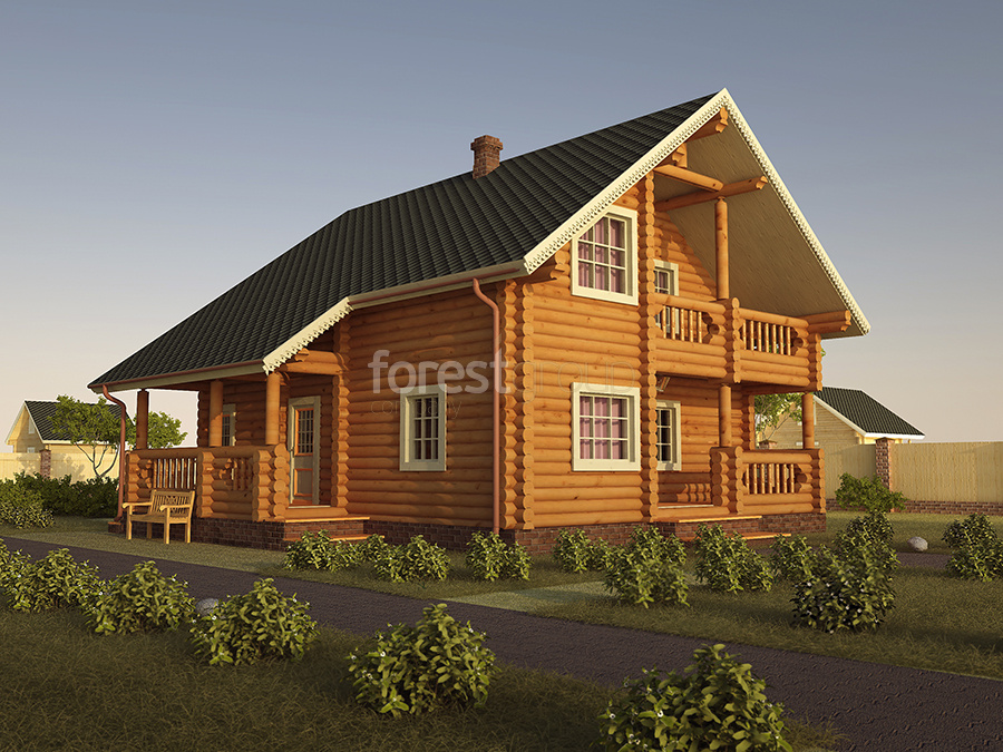 Двухэтажный дом лофт из бревна с лоджией