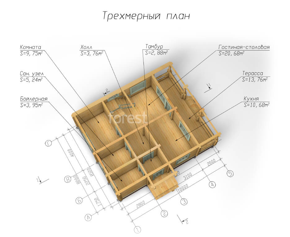 Проект Дома из бревна Ц-611