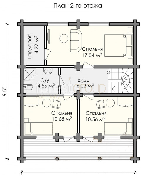Уютный дом для проживания всей семьей, в проекте 3 спальни, балкон