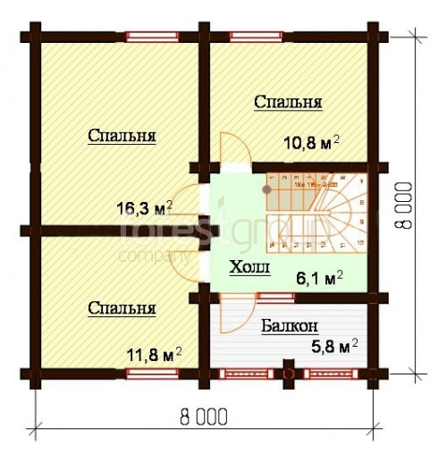 Комфортный большой дом из бревна, два этажа, 3 спальни