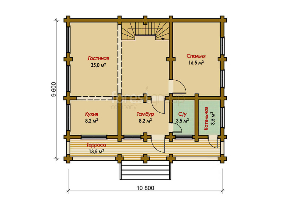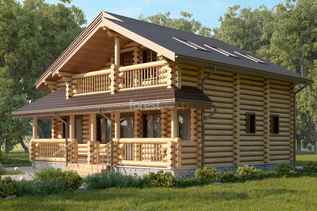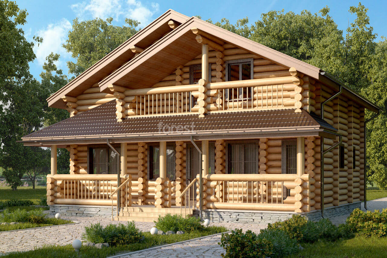 Уютный одноэтажный дом из оцилиндрованного бревна