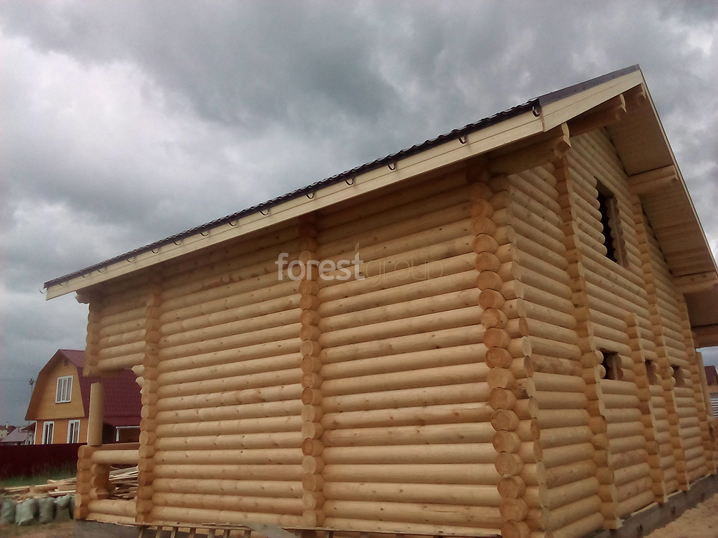 Дом Баня в городе Железнодорожный, поселок Соболиха, диаметр 24 см, кровля металлочерепица, Весна 2020 г