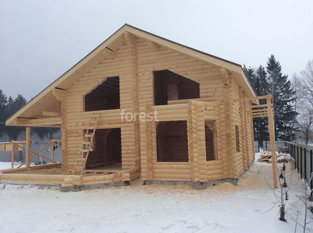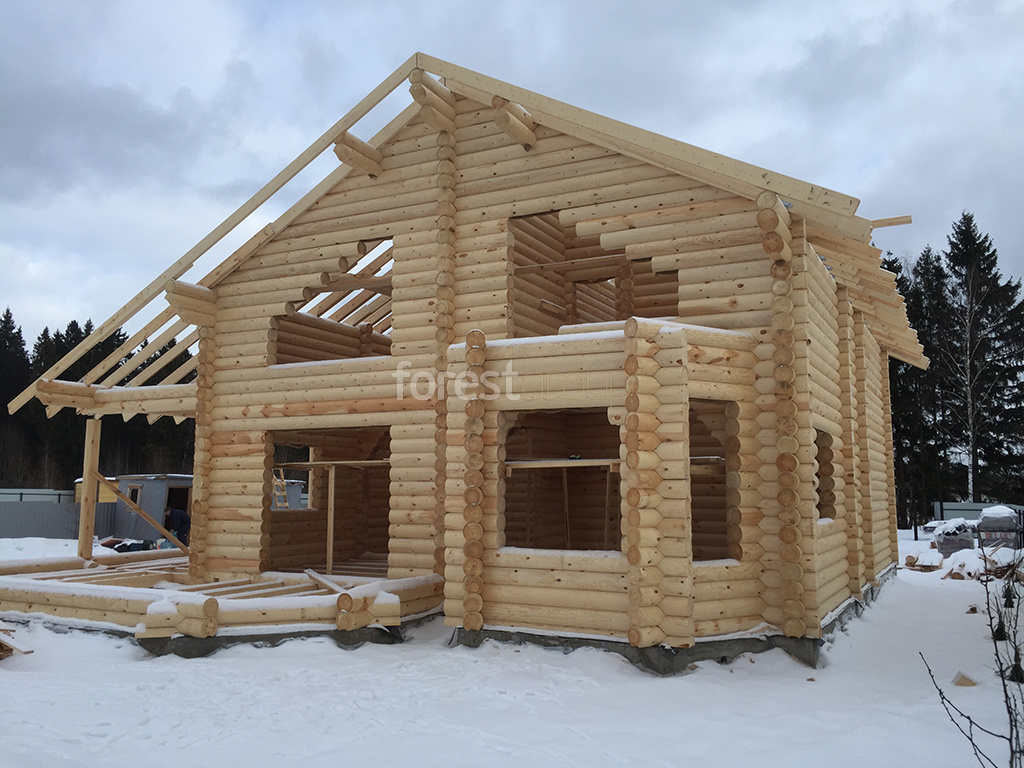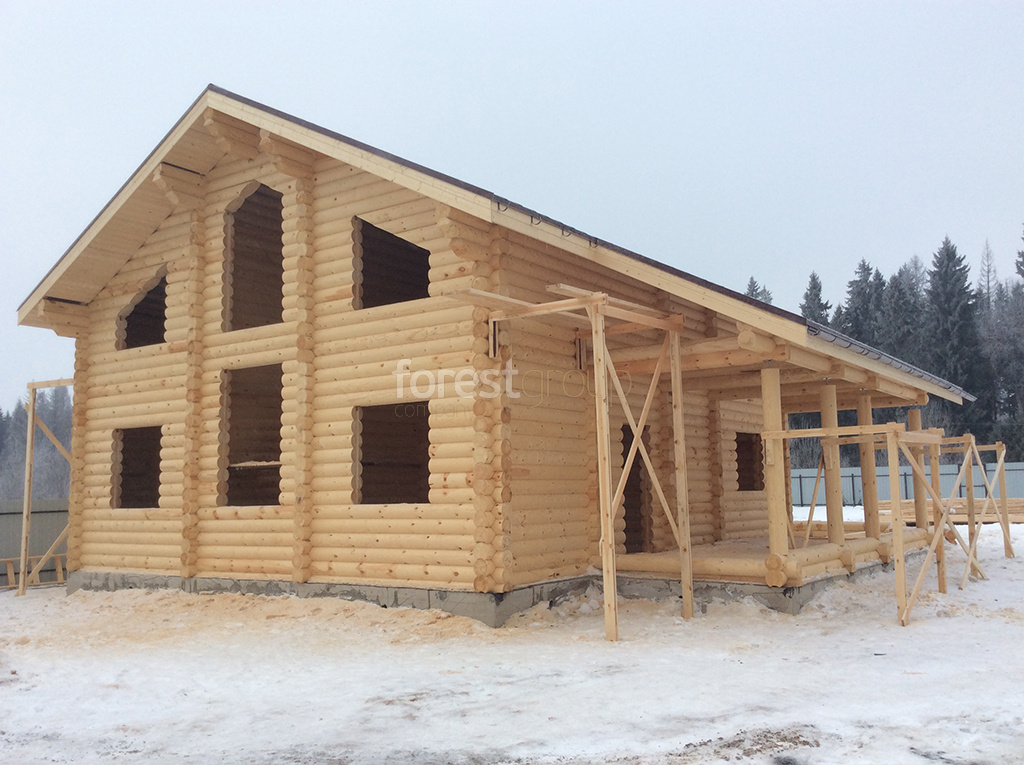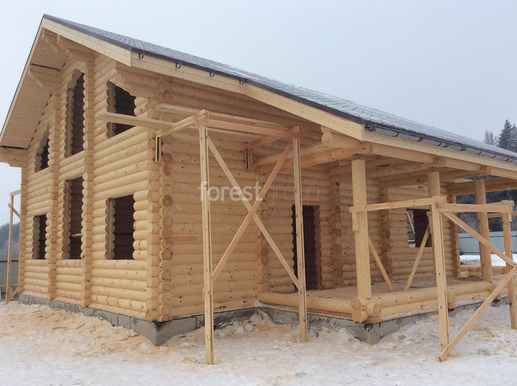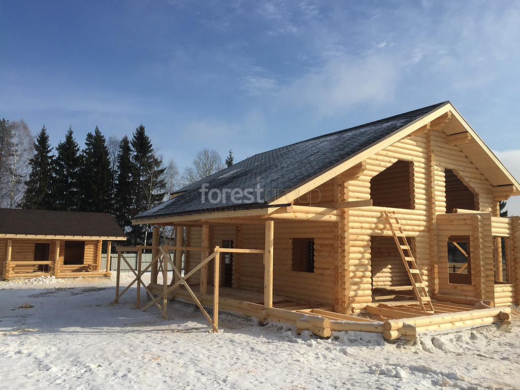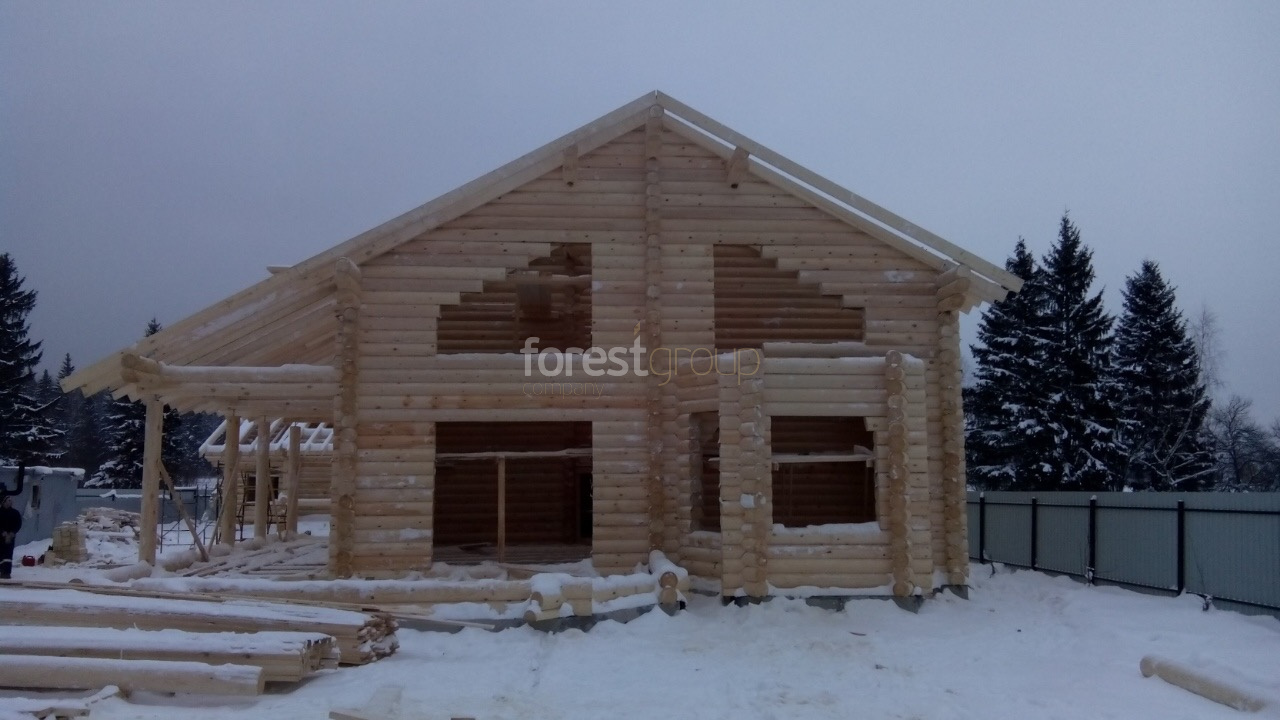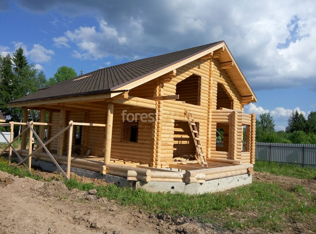 В перечень услуг компании «Группа Форест» входит строительство сооружений с применением срубов из оцилиндрованного бревна, включая создание проекта, сборку, монтаж конструкции и сдачу объекта.