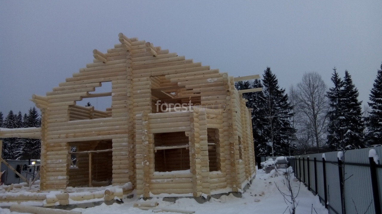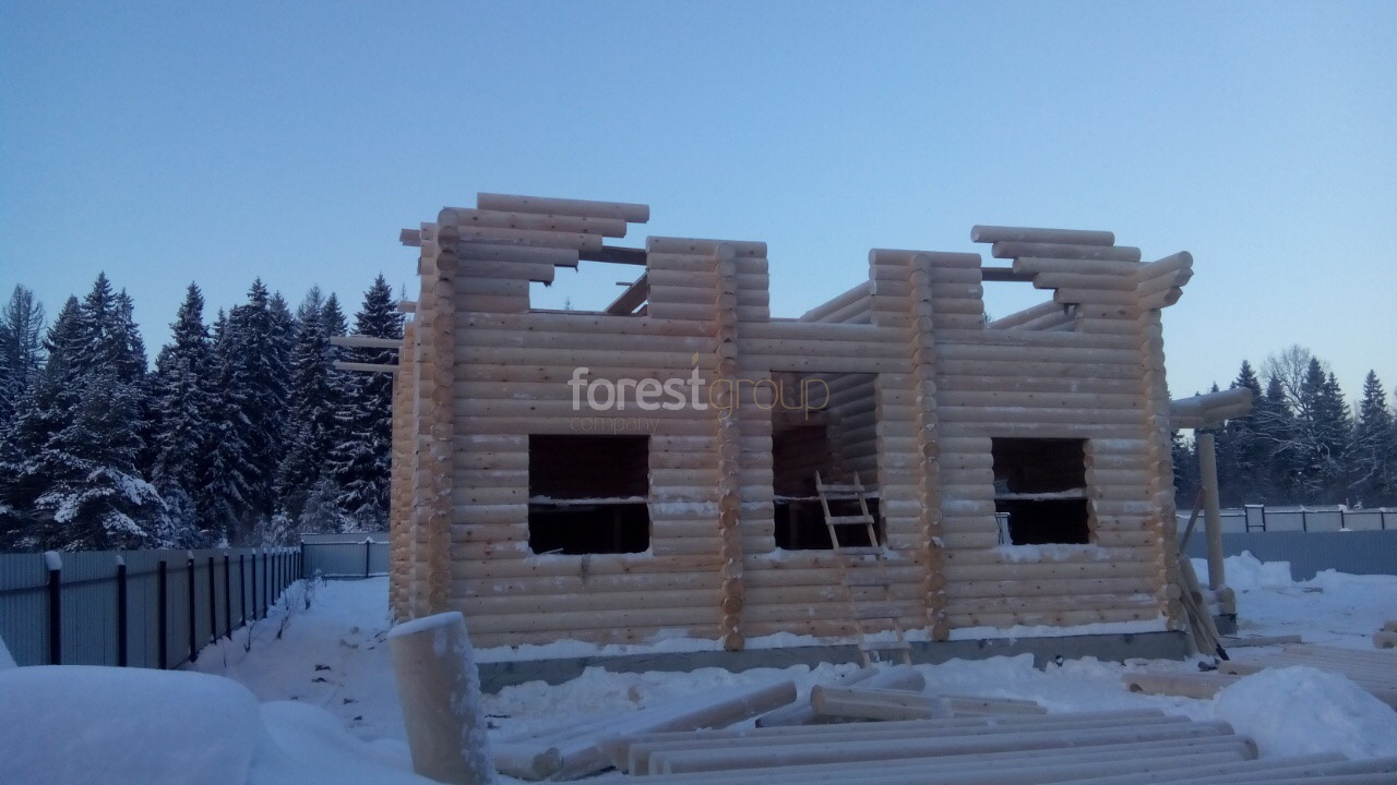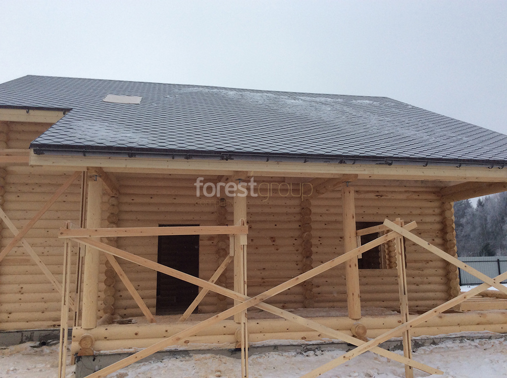 Дом в диаметре 24 см в Фряново, Щелковский район, кровля гибкая черепица Зима 2019 г