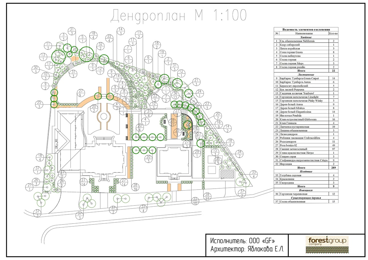 - Подсчет деревьев и кустарников уже произрастающих на данном участке;
