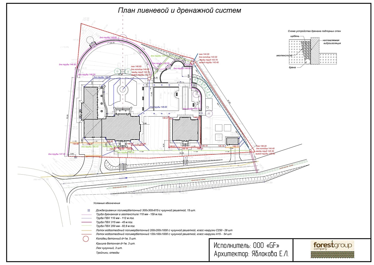 - Планы водоотвода и дренажных систем, системы автоматического полива;
